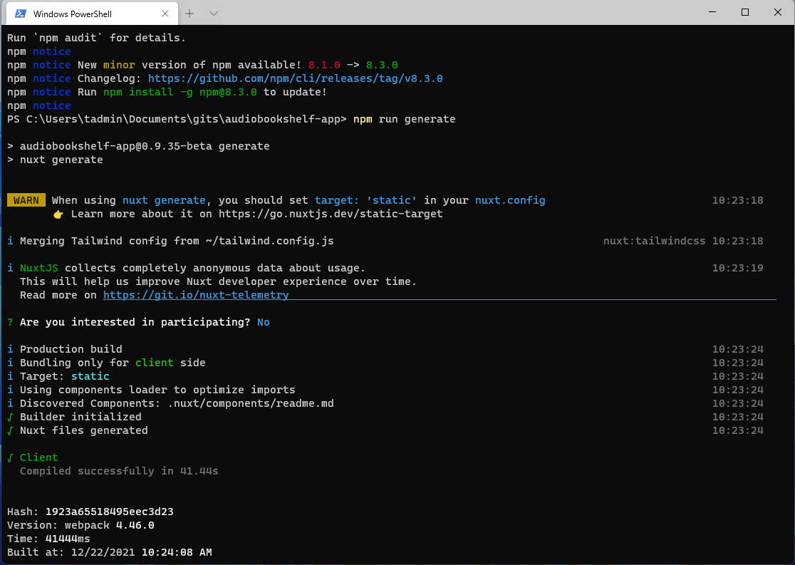 Thank you to Weblate for hosting our localization infrastructure pro-bono. If you want to see Audiobookshelf in your language, please help us localize. Additional information on helping with the translations here. Translation status